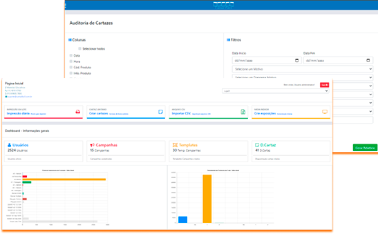 Plataforma amigável e poderosa. Possibilitando uma auditoria dos cartazes e dashboard interativa.